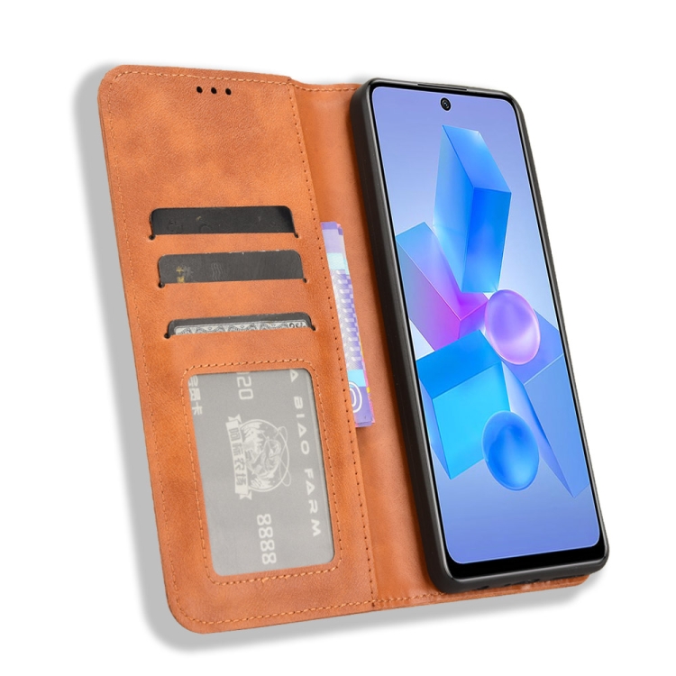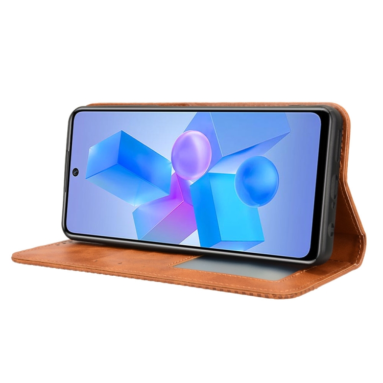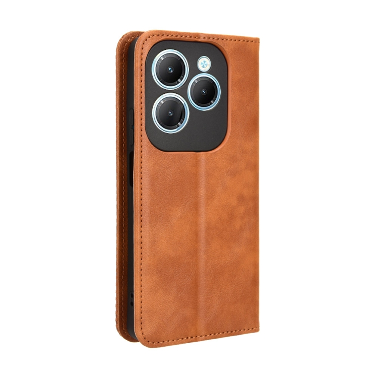 Funda para Infinix Hot 40 4G de Cuero con Textura Retro y Hebilla Magnética (Marrón)