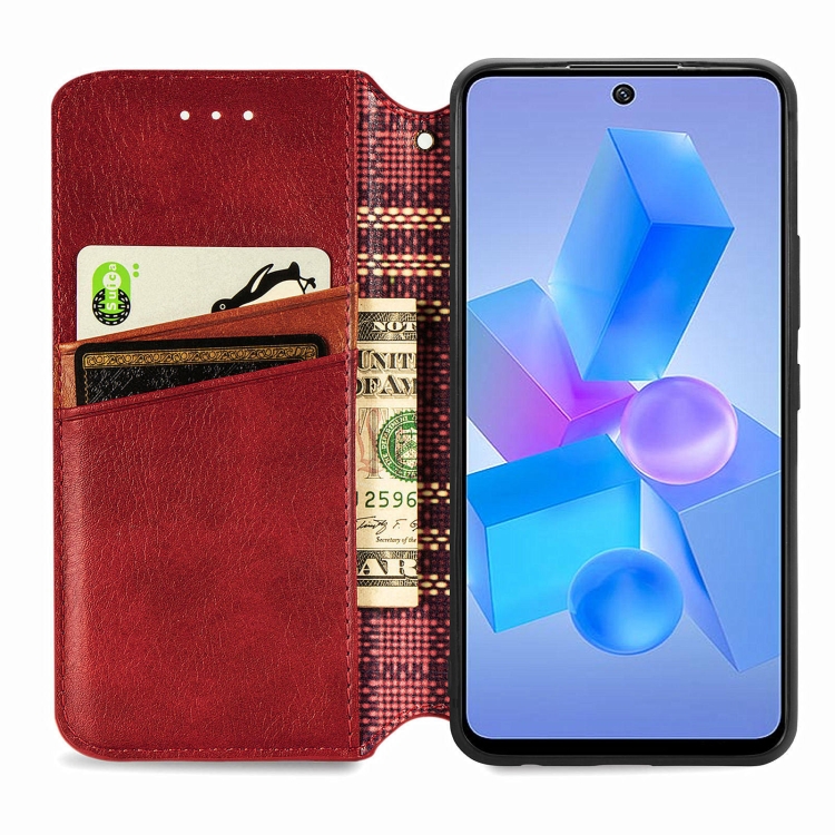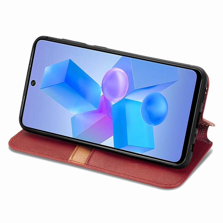 Funda de Cuero Magnético Prensado para Infinix Hot 40 Pro (Rojo) Cubic Grid