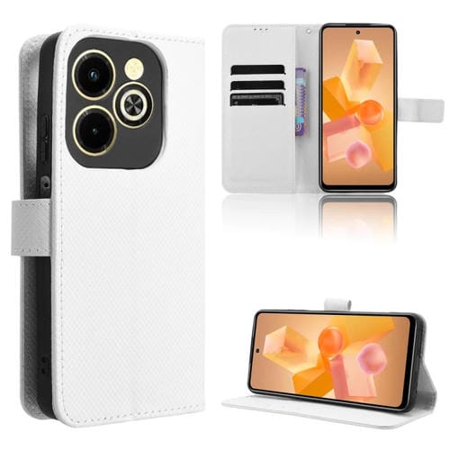 Funda de Cuero para Infinix Hot 40I 4G con Textura de Diamante (Blanco)