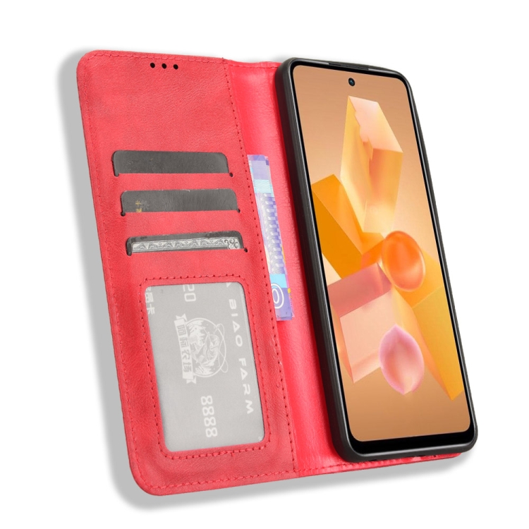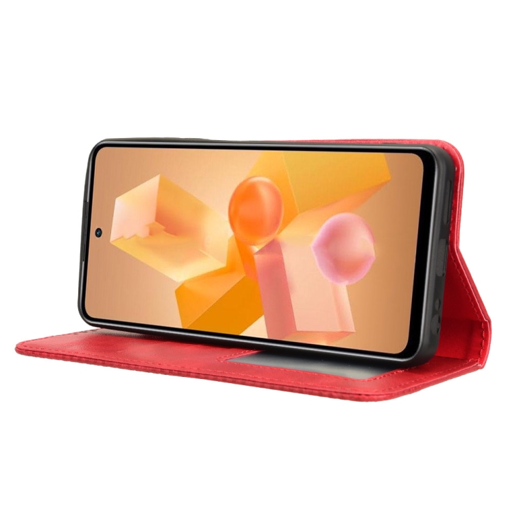 Funda para Infinix Hot 40I 4G Cuero con Textura Retro y Hebilla Magnética (Rojo)