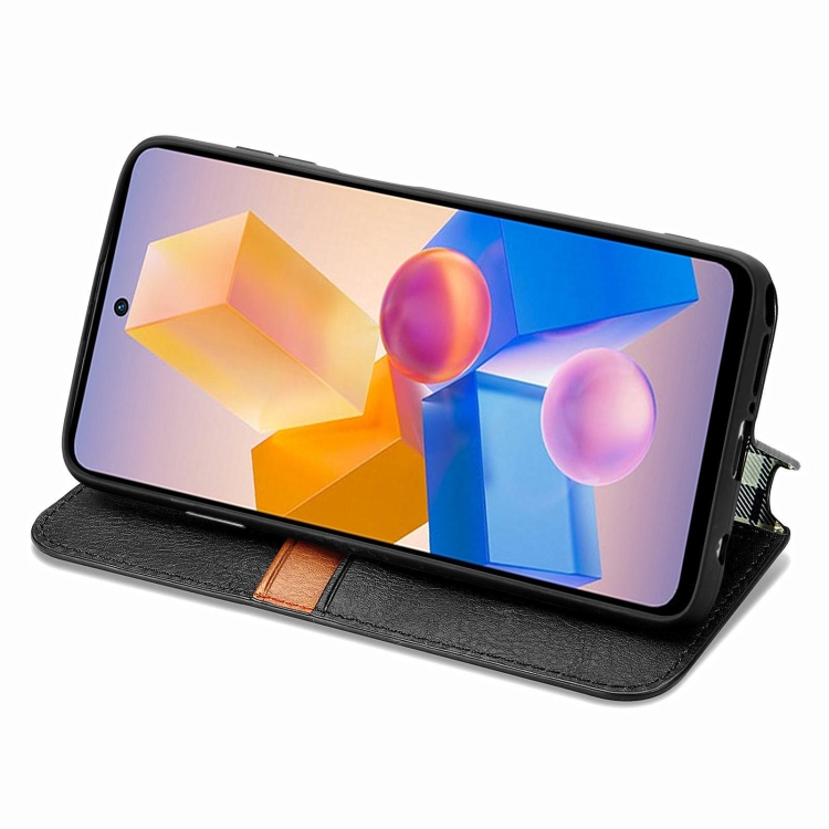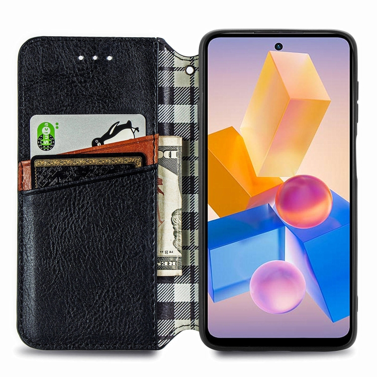 Funda de Cuero Magnético Prensado para Infinix Hot 40I Cubic Grid (Negro)