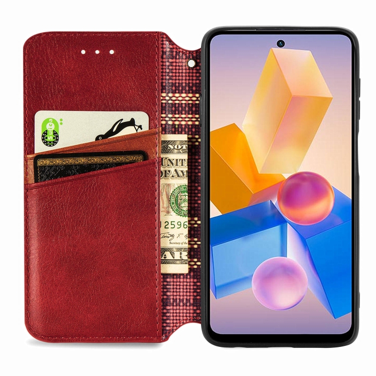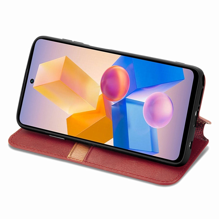 Funda de Cuero Magnético Prensado para Infinix Hot 40I Cubic Grid (Rojo)