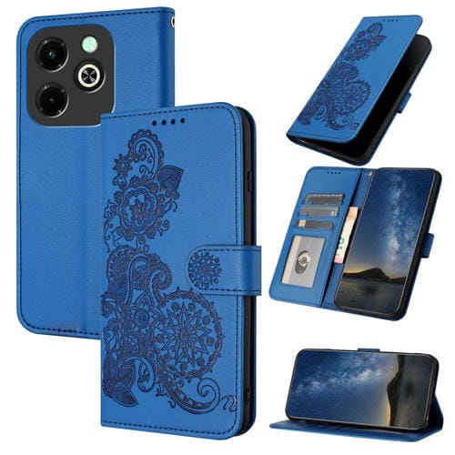 Funda de Cuero para Infinix Hot 40I Datura Flower con Tapa en Relieve (Azul)