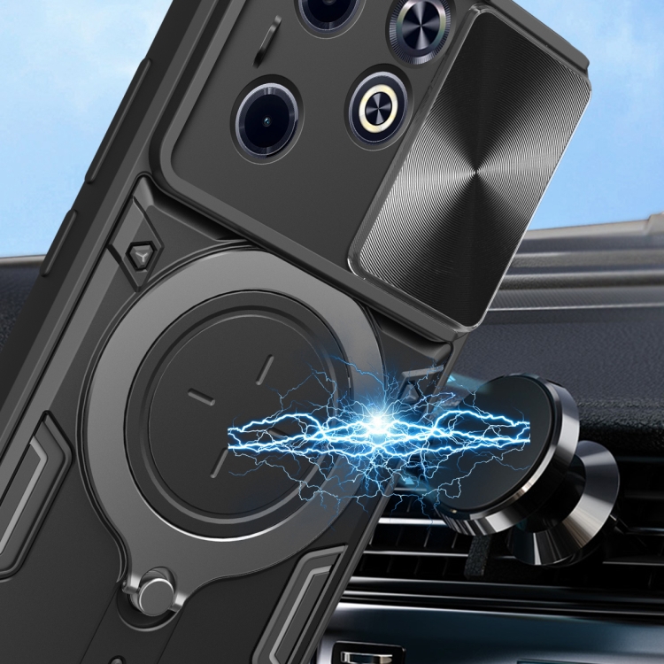 Funda para Infinix Hot 40I Smart 8 Cd Texture con Camshield y Soporte Magnético (Negro)