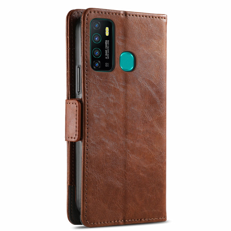 Funda para Infinix Hot 9 Caseno Business Empalme Dual Hebilla Magnética Horizontal Flip PU Cuero con Soporte y Ranuras para Tarjetas (Marrón)