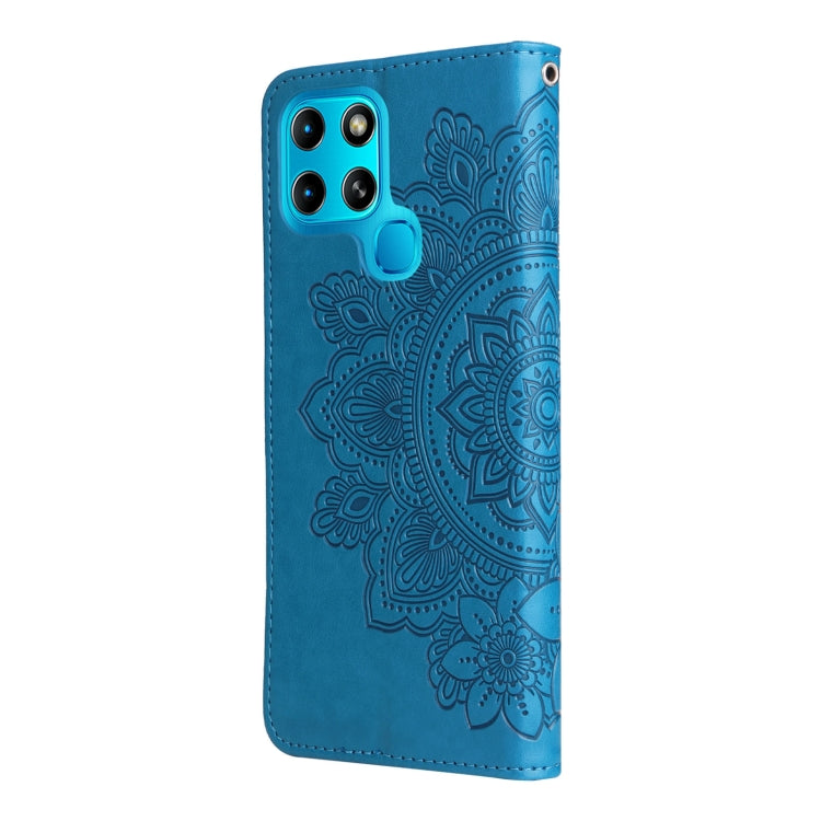 Funda para Infinix Inteligente 6 Flores de 7 Pétalas con Ruina de Cuero En Relieve (Azul)