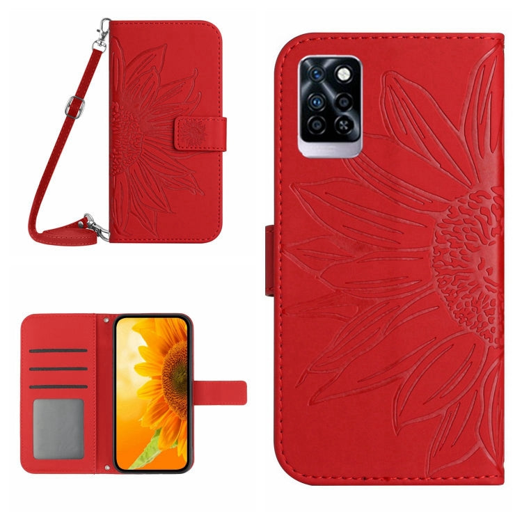 Funda Flip Cuero con Cordón para Infinix Note 10 Pro Skin Feel Sun Flower (Rojo)