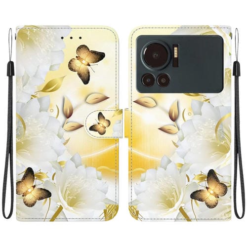 Funda de Cuero para Infinix Note 12 con Dibujo Coloreado y Textura de Cristal (Epiphyllum Mariposa Dorada)