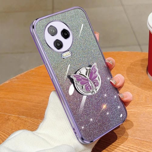 Estuche TPU para Infinix Note 12 Pro 4G con Soporte de Mariposa y Brillo Degradado (Púrpura)
