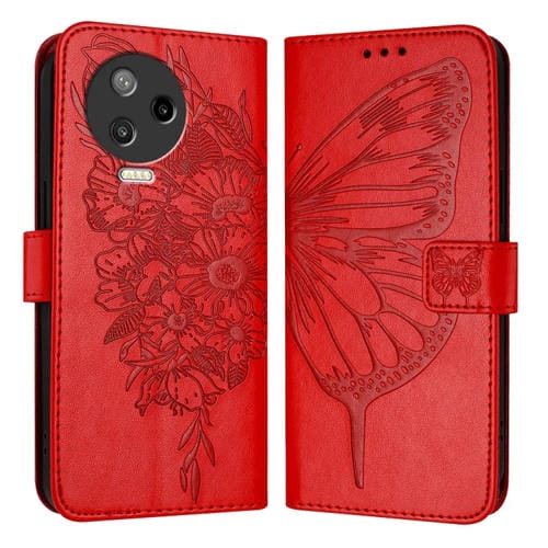 Funda para Infinix Note 12 Pro 4G y Note 12 (2023) de Cuero con Mariposa en Relieve (Rojo)