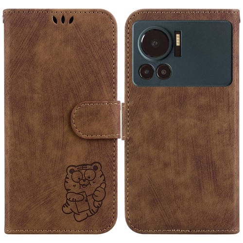 Funda de Cuero para Infinix Note 12 Vip Little Tiger en Relieve (Marrón)