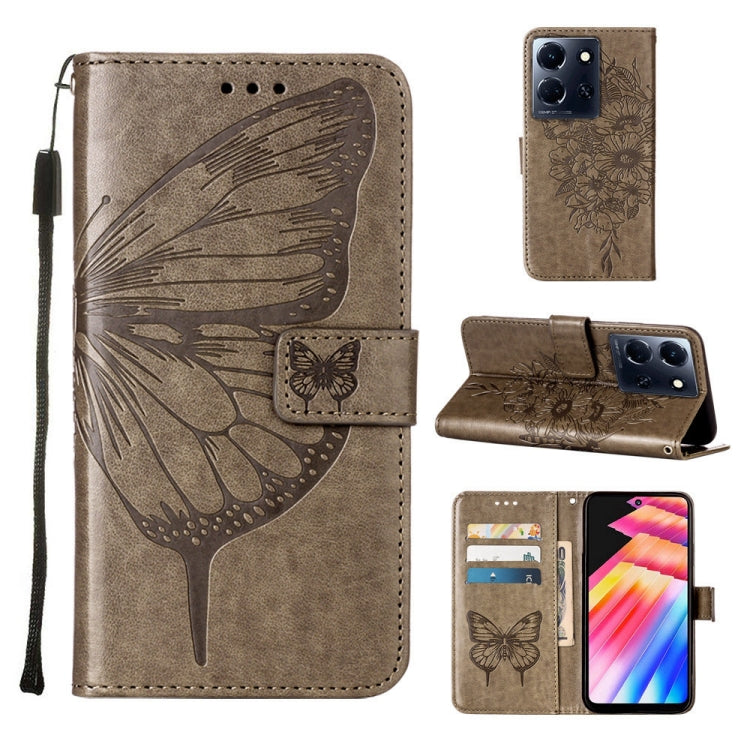 Estuche para Teléfono Infinix Note 30 5G X6711 Cuero con Mariposa en Relieve (Gris)