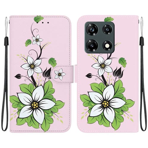 Funda de Cuero para Infinix Note 30 Pro con Dibujo Coloreado y Textura de Cristal (Lirio)