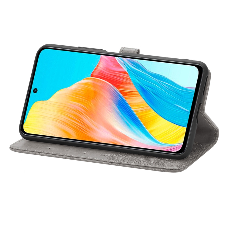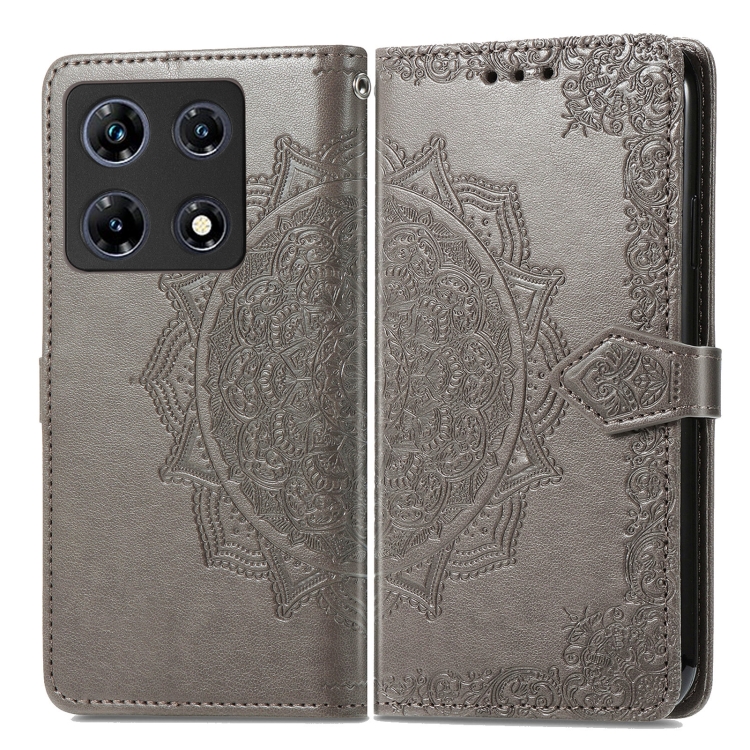 Funda de Cuero para Infinix Note 30 Pro con Relieve de Flores Mandala (Gris)