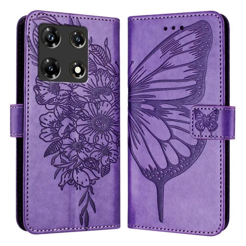 Funda de Cuero para Infinix Note 30 Pro y Note 30 5G con Mariposa en Relieve (Púrpura Claro)