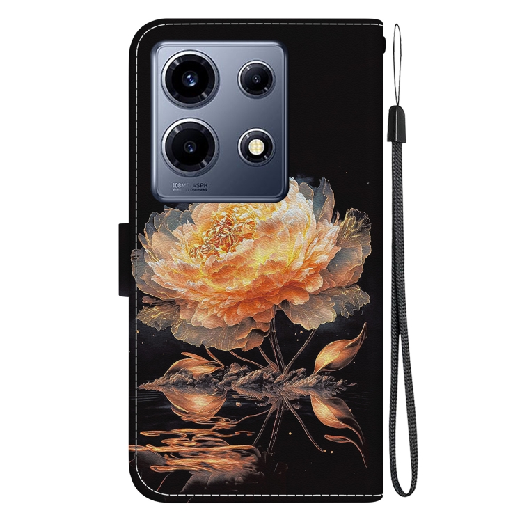 Funda de Cuero para Infinix Note 30 Vip con Dibujo Coloreado y Textura Crystal (Peonía Dorada)