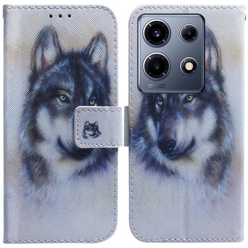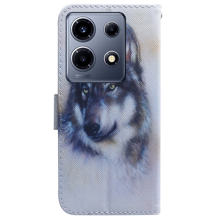 Funda de Cuero para Infinix Note 30 Vip con Tapa y Dibujo Coloreado (Lobo Blanco)