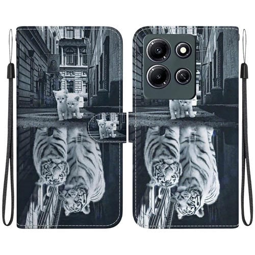 Funda de Cuero para Infinix Note 30I con Dibujo Coloreado y Textura de Cristal (Reflejo de Tigre Gato)