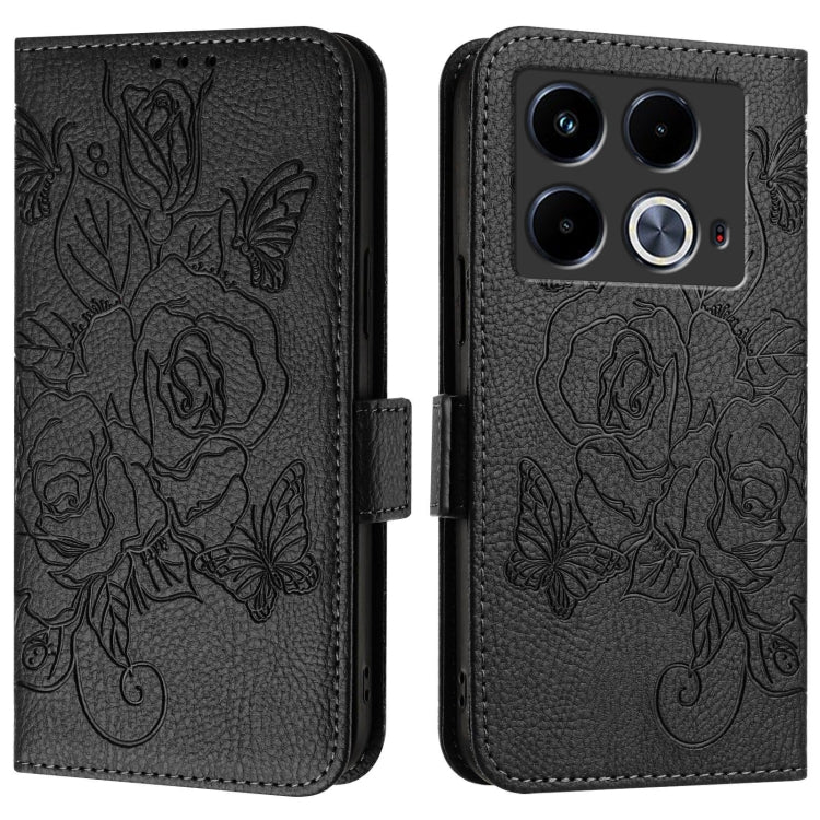 Estuche de Cuero Antirrobo RFID para Infinix Note 40 4G con Relieve Rosa (Negro)