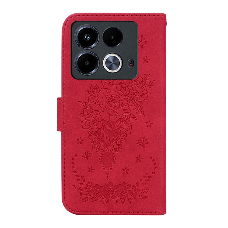 Funda para Infinix Note 40 4G de Cuero con Relieve de Mariposa y Rosa (Rojo)