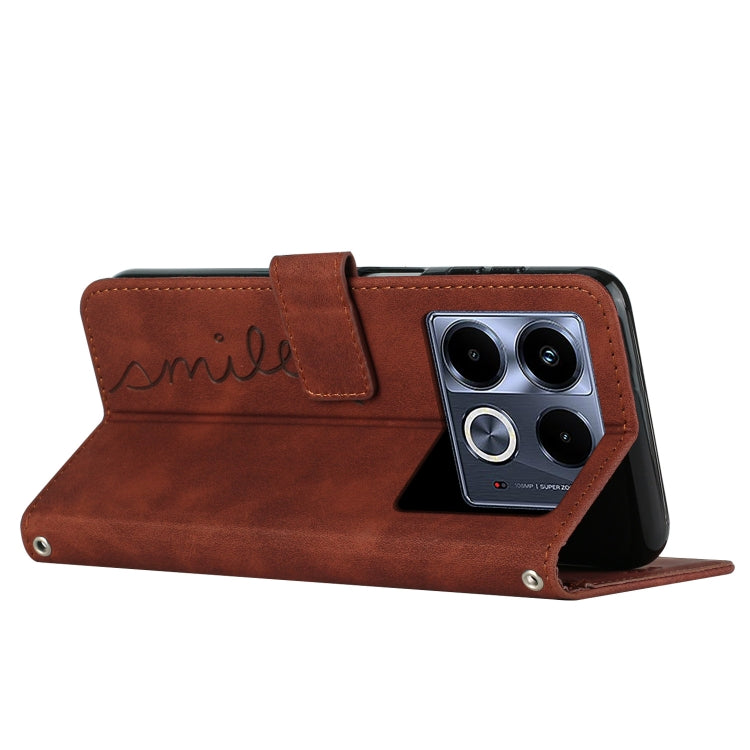 Funda para Infinix Note 40 5G Skin Feel Heart Cuero en Relieve con Cordón Largo (Marrón)