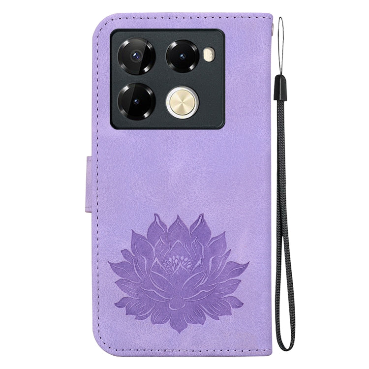 Funda de Cuero para Infinix Note 40 Pro 4G y 5G con Relieve de Loto (Púrpura)