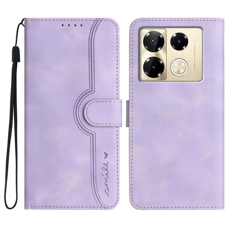Funda de Cuero para Infinix Note 40 Pro 4G / 5G con Sensación de Piel y Patrón de Corazón (Púrpura)