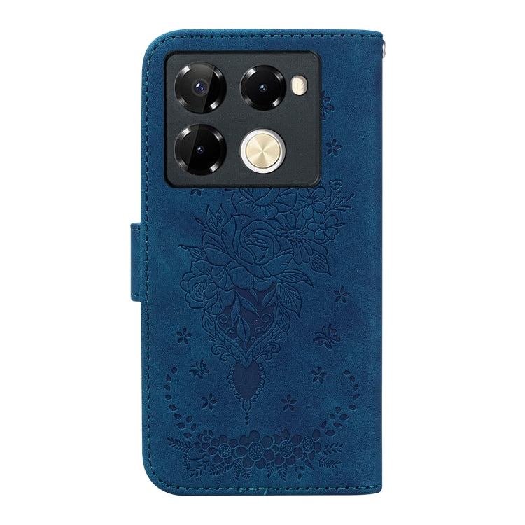Funda para Infinix Note 40 Pro 4G y 5G de Cuero con Relieve Mariposa y Rosa (Azul)