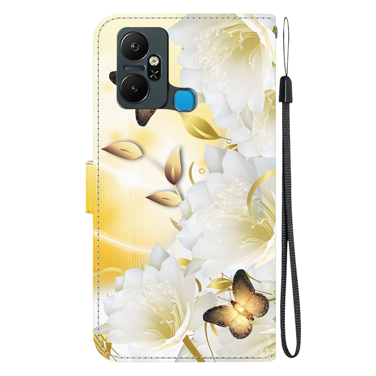 Funda de Cuero para Infinix Smart 6 Plus con Dibujo Epiphyllum de Mariposa Dorada y Textura de Cristal