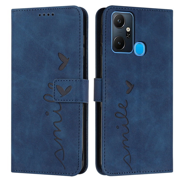 Funda de Cuero para Infinix Smart 6 Plus con Diseño Heart Pattern (Azul)