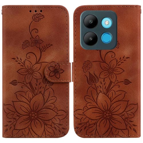 Funda de Cuero para Infinix Smart 7 African X6515 con Relieve de Lirio (Marrón)