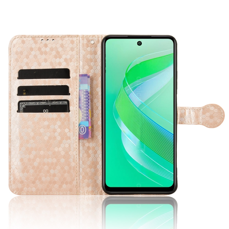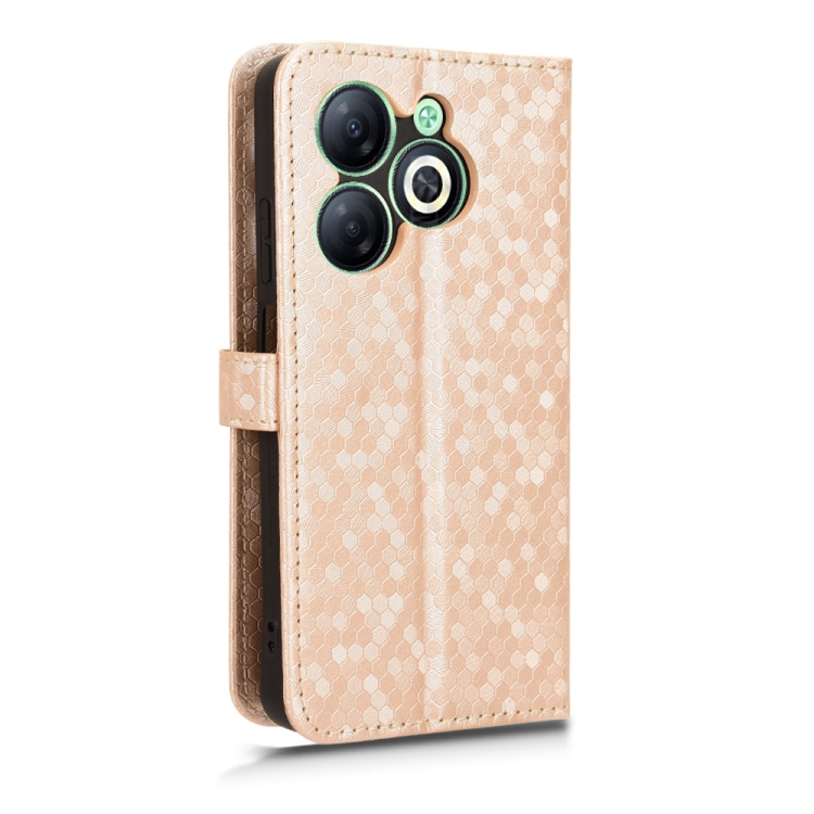 Funda de Cuero para Infinix Smart 8 con Textura Punto de Panal (Dorado)