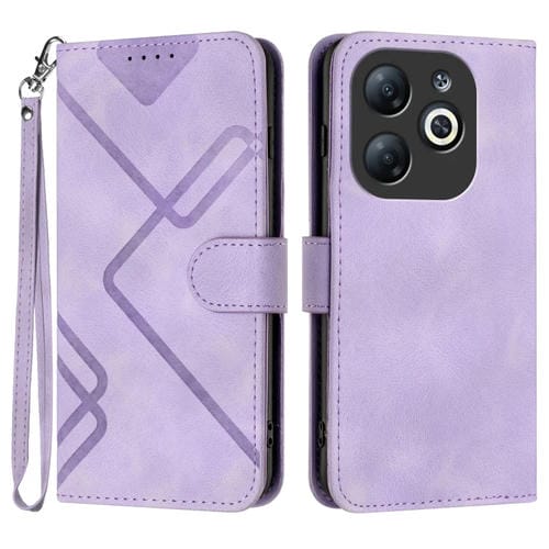 Funda de Cuero para Infinix Smart 8 con Sensación de Piel y Patrón de Líneas (Púrpura Claro)