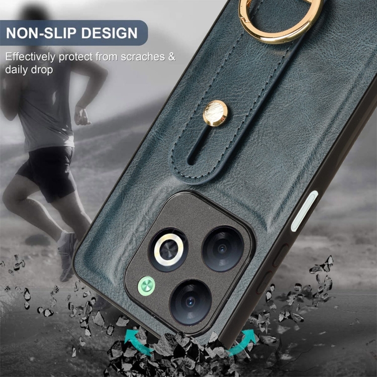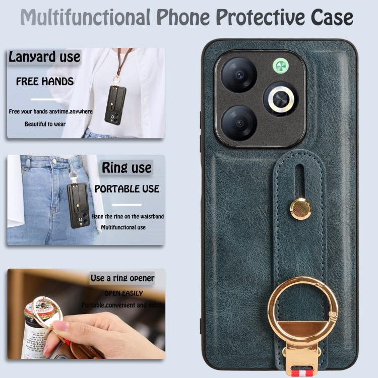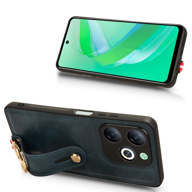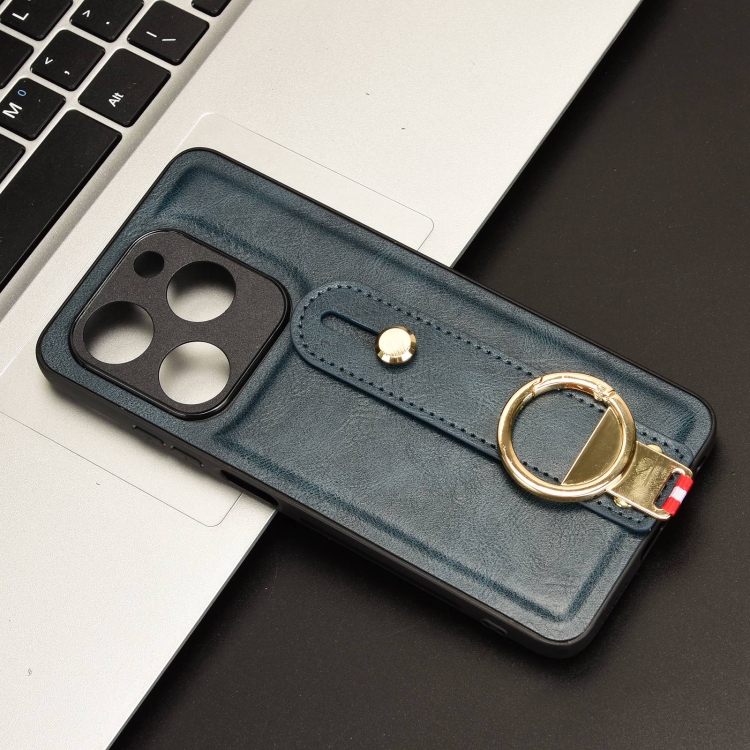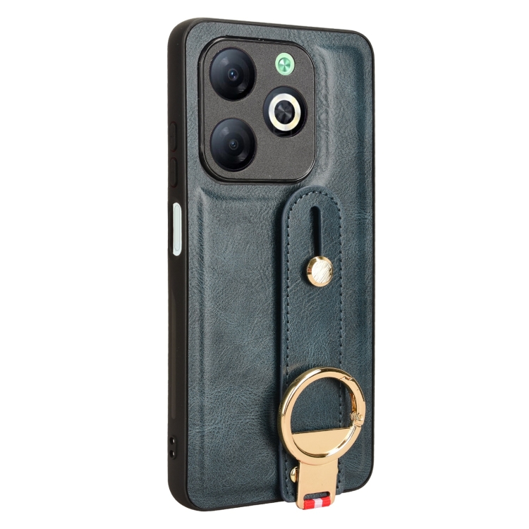 Funda Trasera de Cuero para Infinix Smart 8 con Pulsera (Azul)