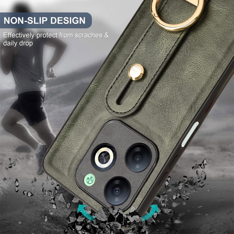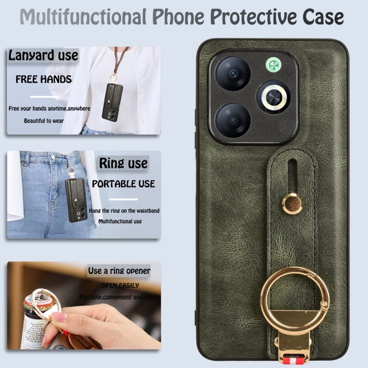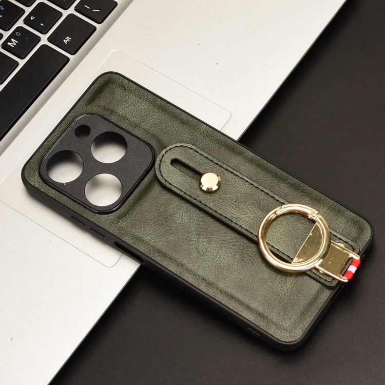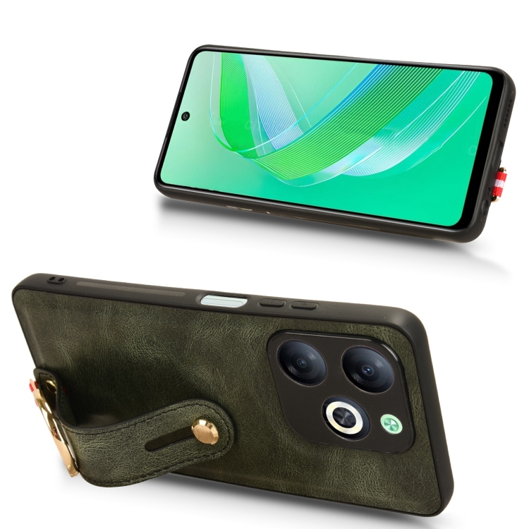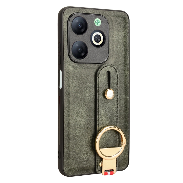 Funda Trasera de Cuero para Infinix Smart 8 con Pulsera (Verde)