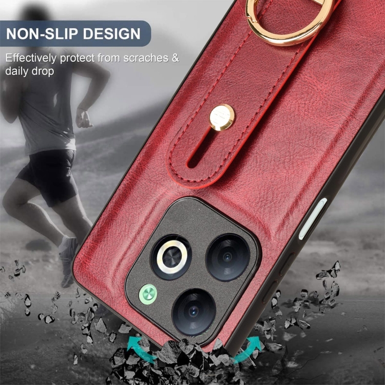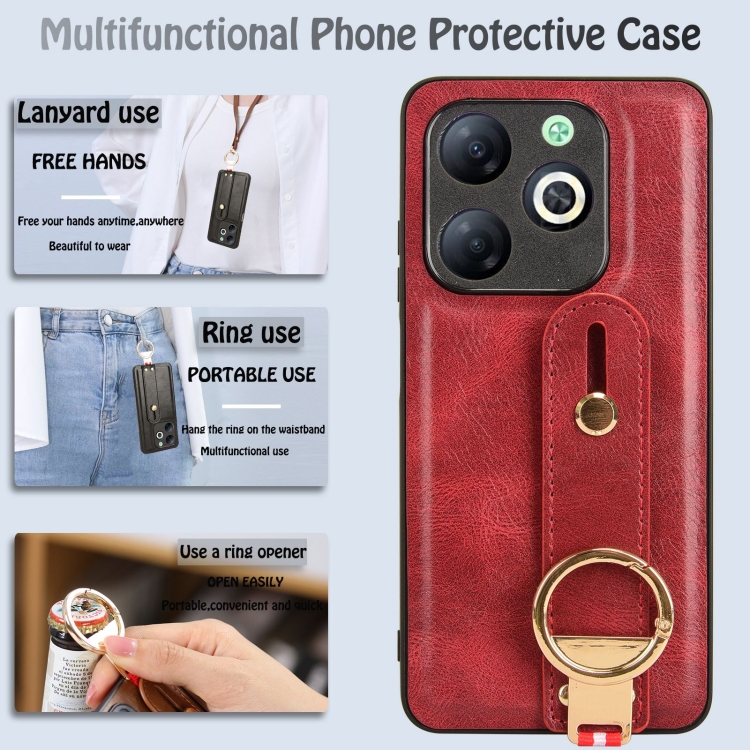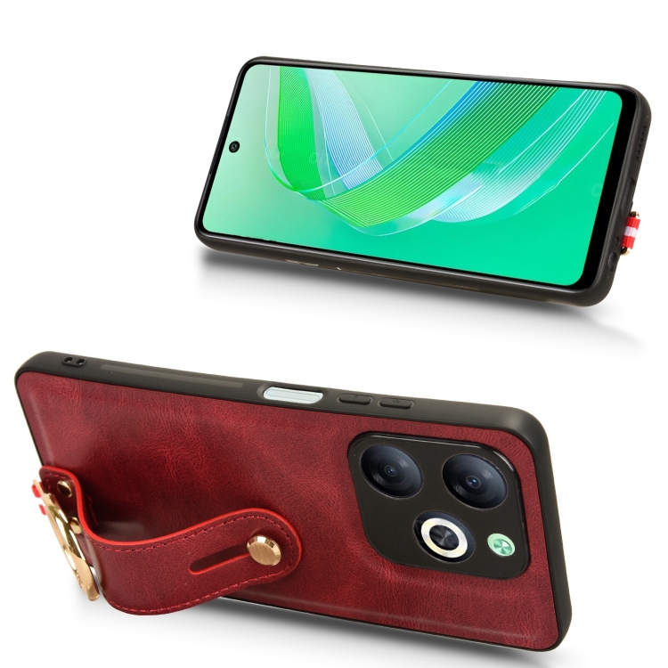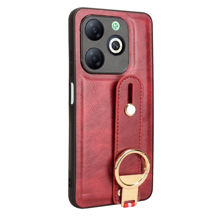 Funda Trasera de Cuero para Infinix Smart 8 con Pulsera (Rojo)