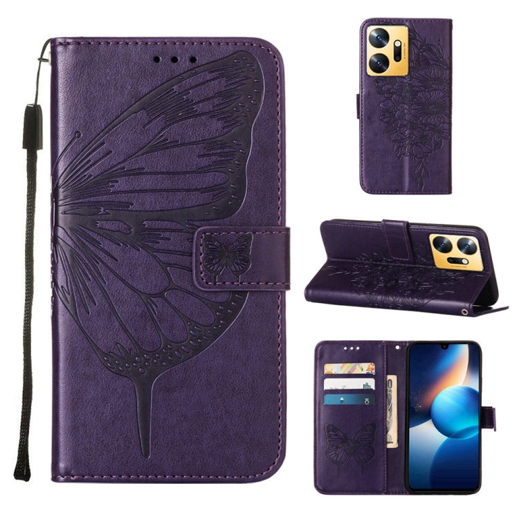 Estuche para Teléfono Infinix Zero 20 X6821 Cuero con Mariposa En Relieve (Púrpura Oscuro)