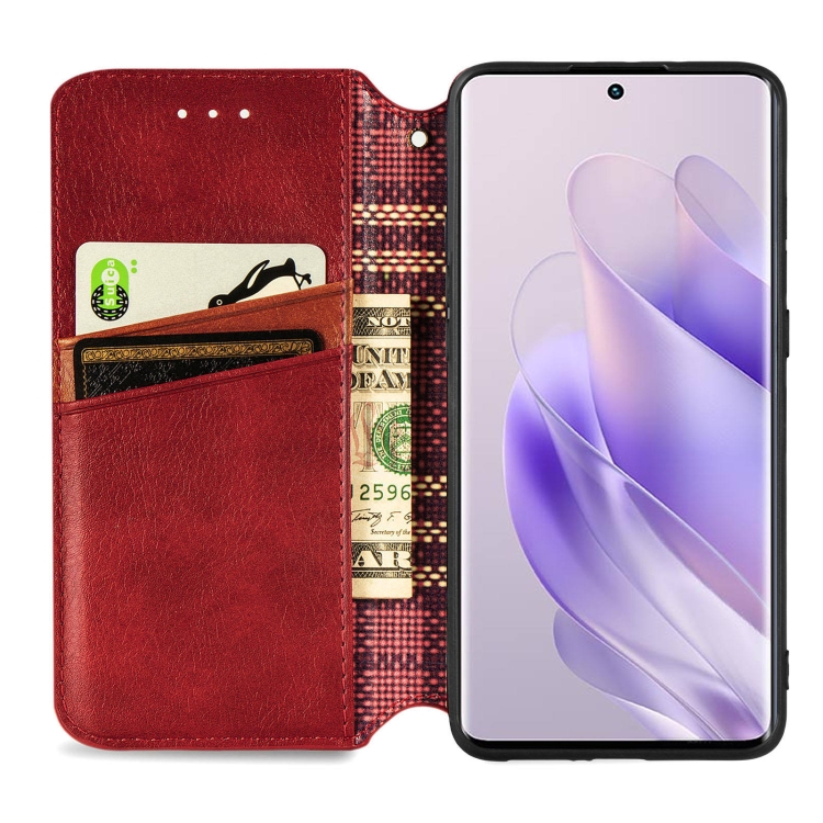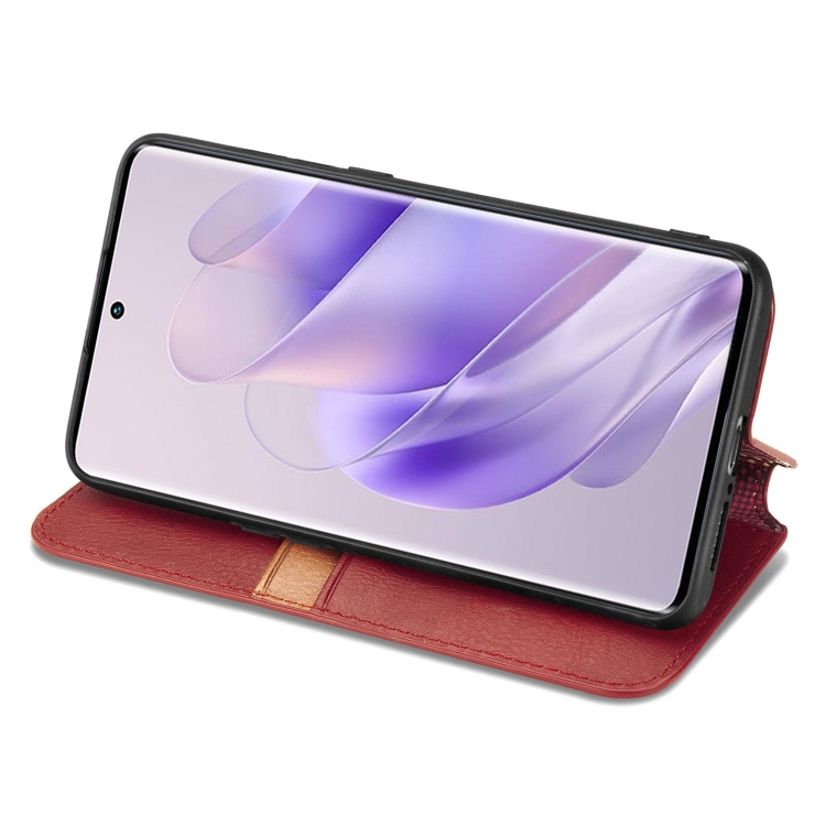Funda de Cuero Magnético Prensado para Infinix Zero 30 5G Cubic Grid (Rojo)