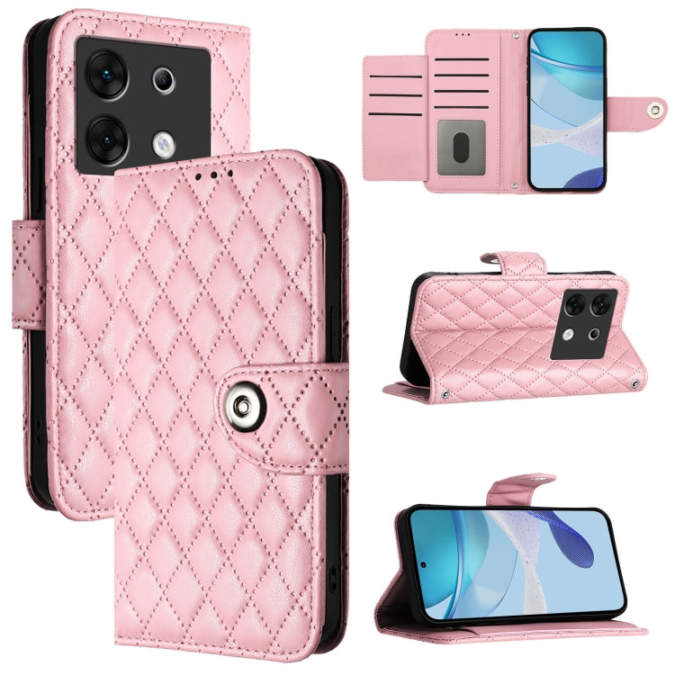 Funda de Cuero para Infinix Zero 30 5G con Tapa, Textura Romboidal y Cordón (Rosa)