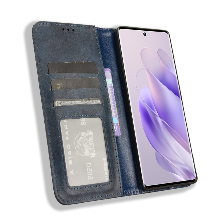 Funda para Infinix Zero 30 5G de Cuero con Textura Retro y Hebilla Magnética (Azul)