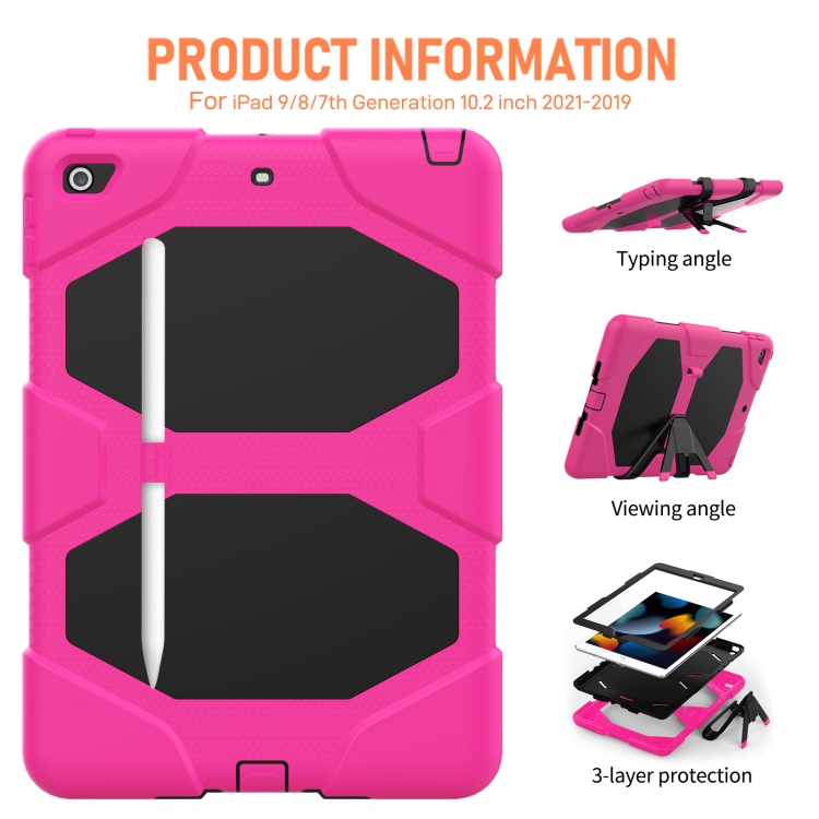 Funda Protectora Silicona para iPad 10.2 (2021/2020/2019) con Soporte y Ranura para Bolígrafo (Rosa Roja)