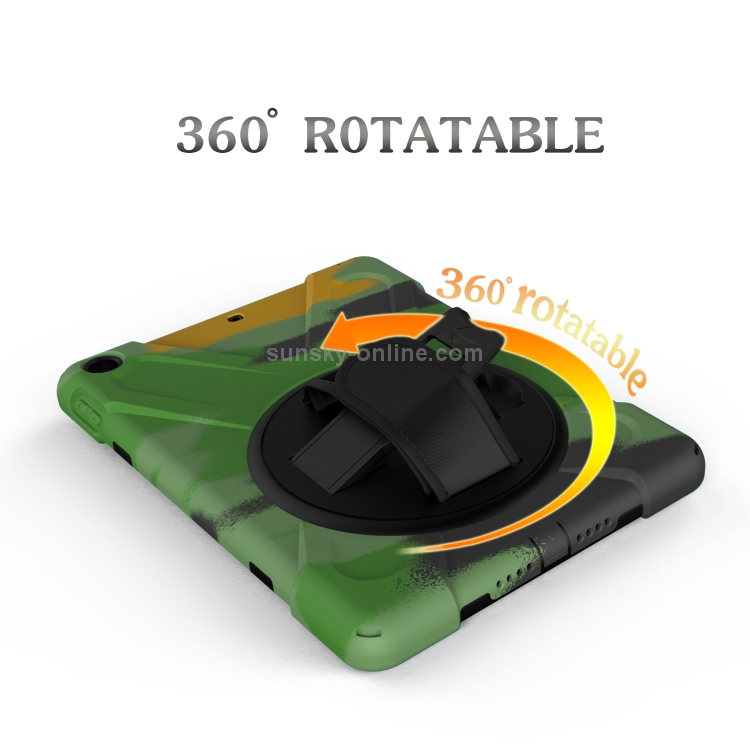 Funda para iPad 9.7 (2018) y iPad 9.7 (2017) PC con Rotación 360 Grados y Silicona (Camuflaje Verde)