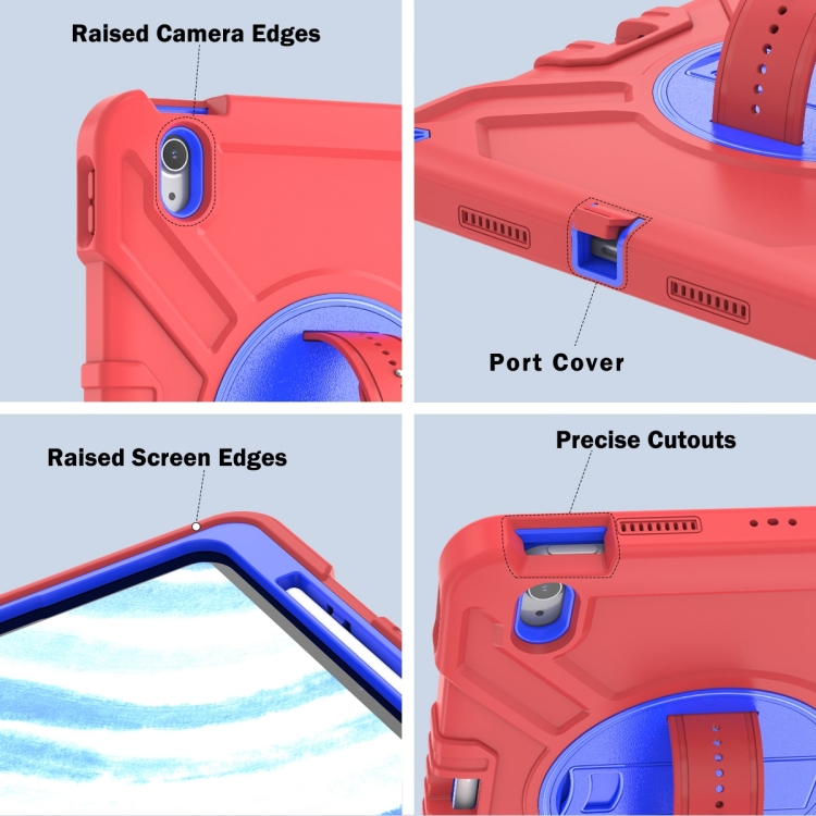 Funda para Tableta iPad Air 11 2024 X Silicona Híbrida con Rotación y Correa (Rojo Azul)