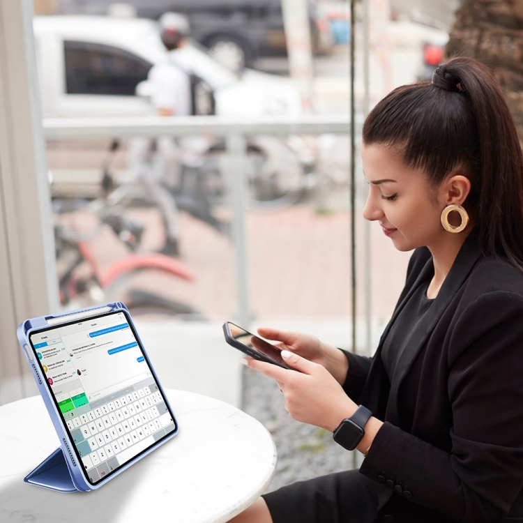 Funda para Tableta iPad Air 5/4 TPU Cuero Inteligente 3 Pliegues con Ranura Bolígrafo (Azul Hielo)
