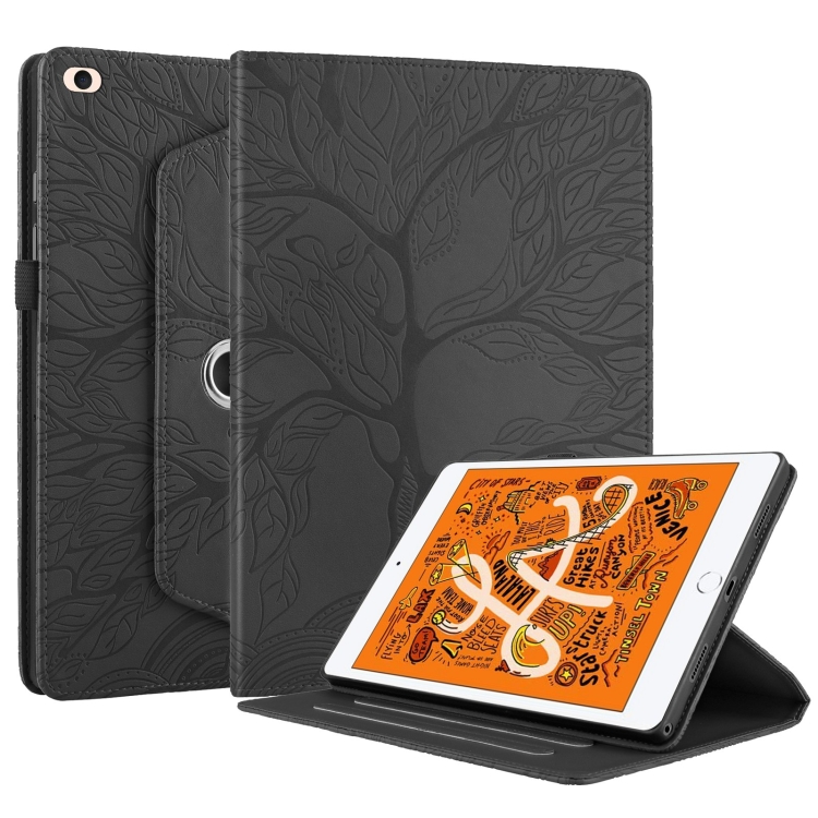 Estuche para Tableta iPad Mini 5 / Mini 4 / Mini 3 Tree Life Cuero con Rotación (Negro)