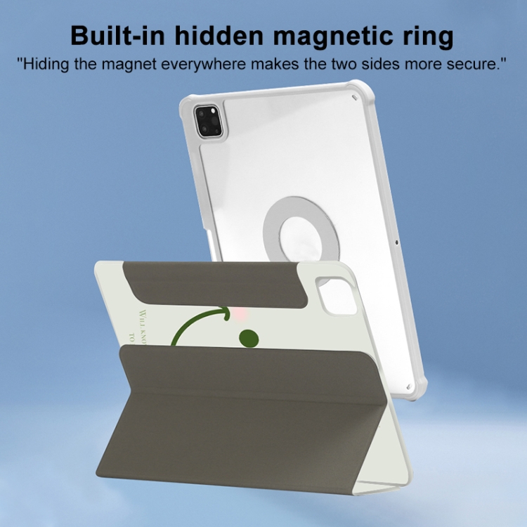 2. Diseño especial: la cubierta magnética desmontable puede mantener su pantalla cubierta, plegarla en un soporte con modos de visualización, escritura y retrato.Múltiples ángulos de soporte como mirar, leer y escribir ángulos.La parte posterior de TPU con imán fuerte se puede unir fácilmente a superficies de acero como refrigeradores y pizarras blancas.Aporta una comodidad más increíble a tu vida, como estudiar, hacer yoga, cocinar y bañarte.