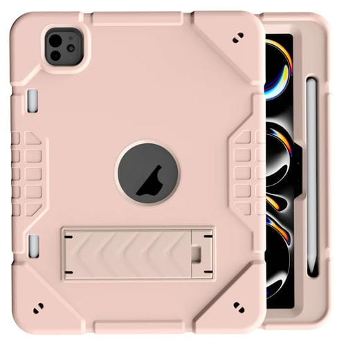 Funda híbrida de silicona para iPad Pro 11 (2024) con soporte de armadura (Oro Rosa)
