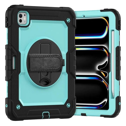Funda híbrida silicona para iPad Pro 11 (2024) con correa para el hombro (Azul Claro y Negro)