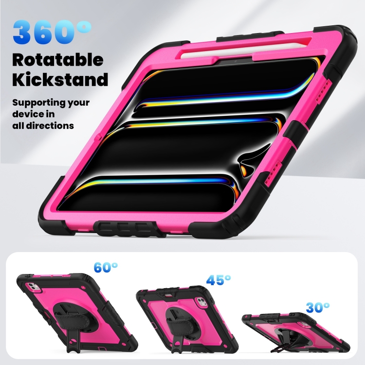 Funda híbrida de silicona para iPad Pro 11 (2024) con correa para el hombro (Rosa, Rojo y Negro)