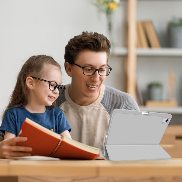 Funda para Tableta iPad Pro 12.9 Cuero Inteligente TPU 3 Pliegues con Ranura para Bolígrafo (Gris)